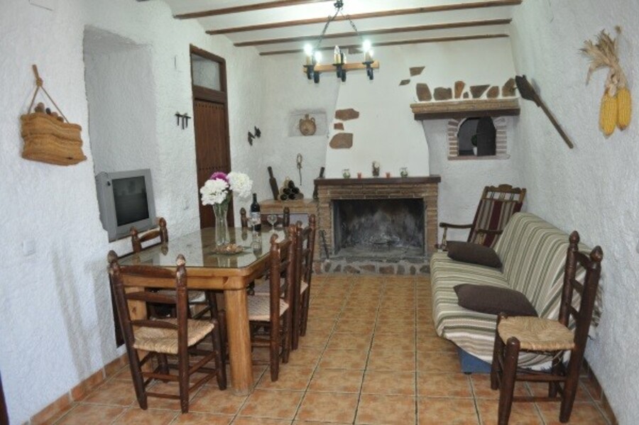 3.Cueva Mina – living/dining room with fireplace, kitchen, bathroom with shower and three bedrooms.