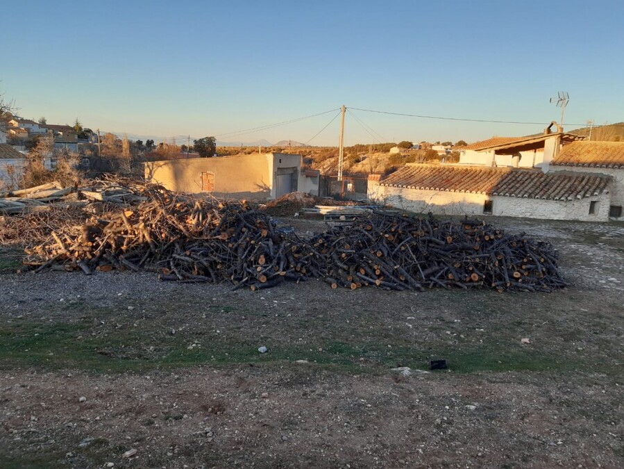The property consists of an entrance hallway, kitchen with open fireplace and almond husk burner, living room with wood burning stove, 4 bedrooms and a bathroom.