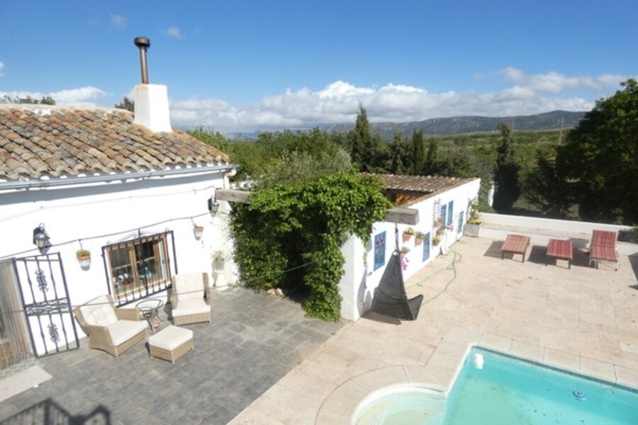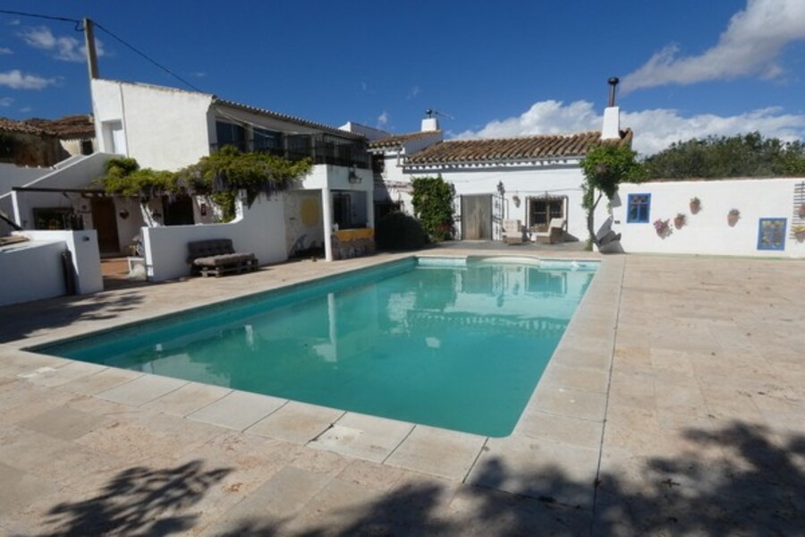A fantastic opportunity to purchase an amazing property incorporating a cortijo, an artist´s studio, a garage, a casita, a yoga studio, a swimming pool and a large garden. 7,500 m2 of land with lots of fruit trees, ponds, mature trees, chicken coups, vegetable garden and greenhouse. Situated just o