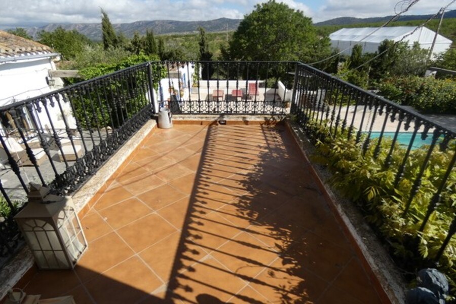 The cortijo is 350 m2 and consists of ground floor - huge kitchen diner with vaulted roof from converted barn, formal dining room, and large sitting room with fireplace. Guest apartment with lounge, bedroom and bathroom.